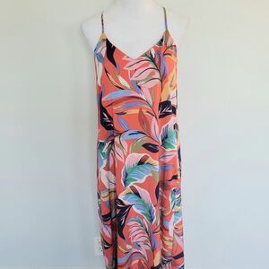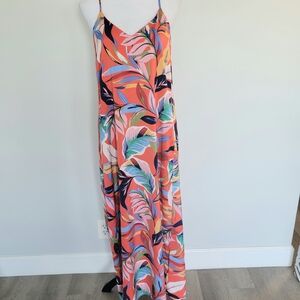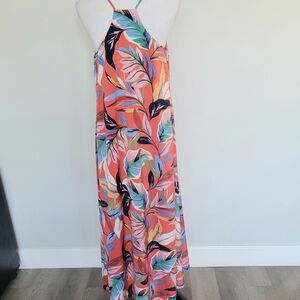 Nicole Miller Satin Multicolor Floral Pockets Straps Beach Maxi Dress Sz Large