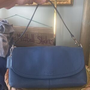 NWTO Coach Park Denim Blue Leather Large Flap Wristlet