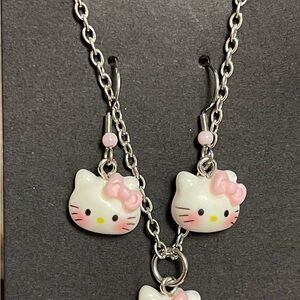 Charming Hello Kitty jewelry set with pink bows. Includes necklace and earrings. Cute and stylish for kids.