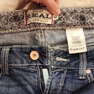 Ariat jeans combine durable material with style and sass. Nice design detail on the rear pockets, contrast stitching and a patterned inside waist band.