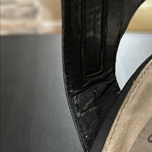 Chic black heels with a stylish strap design. Ideal for elevating any outfit. Wear on the inside of ankle straps. See photos