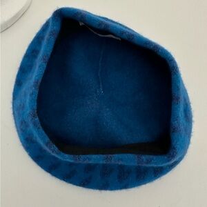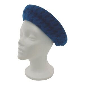BCBGeneration Blue Print Beret Hat Wool Blend Fuzzy Parisian French Girl Chic