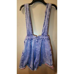 Ladies 1990s Vintage Mission Bay Denim Overall Shorts. Size 9. Good condition. Waist measures at 14 inches.