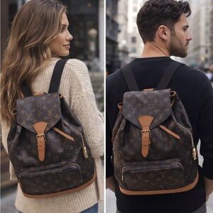 LOUIS VUITTON UNISEX BACK-PAC W/ADJUSTABLE SHOULDER STRAPS & OUTSIDE ZIP STORAGE