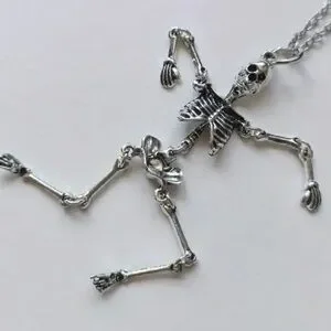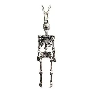 Embrace edgy elegance with this silver skeleton pendant necklace. Perfect for adding a unique touch to any outfit.