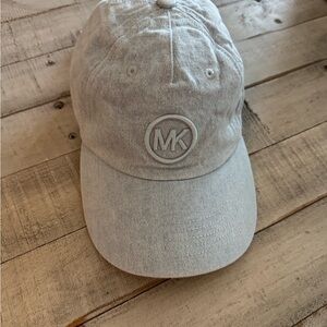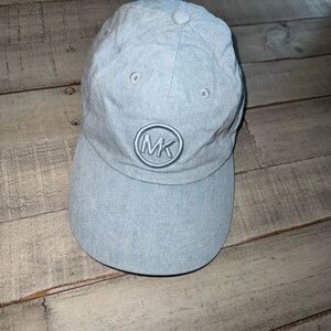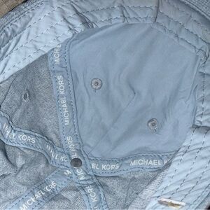 This stylish Michael Kors cap has an embroidered iconic logo and is a chic light blue color. It’s perfect for everyday wear and comes in one size. The adjustable strapback closure makes it comfortable to wear. It’s in great condition, having been worn only once.