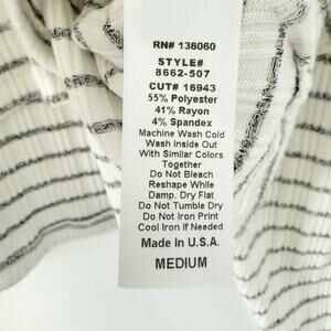 Machine washable. 55% polyester, 41% rayon, 4 spandex