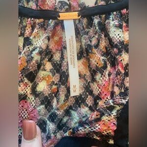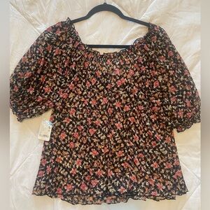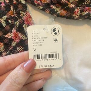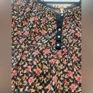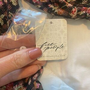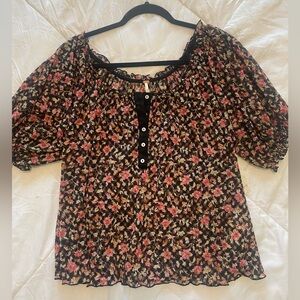 Bought this from @freepeople (AWESOME Posher) and it is beautiful! But I am moving and have too many new and used clothes in the ole closet 😂! Stylish blouse by Free People. Black base with pink floral design. Features short sleeves and button accents.slightly sheer for tank top, bralette or bra underneath for summer into fall and spring!