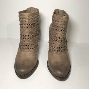Fergalicious Women’s Taupe Booties 7.5M Braided Back Zip Ankle Boots New