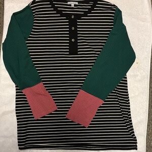 Stylish crossbody with navy and white chevron pattern. Features a brown leather strap. Perfect for daily use.