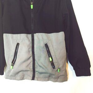 Tommy Bahama Active Jacket Boys S 5-6 Black Gray Full Zip Hooded Windbreaker. Condition is preowned. Lightweight hooded jacket with contrasting green accents, two zippered front pockets, and elastic cuffs. Functional and stylish for cooler days. (FC09)