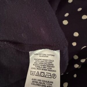 Navy tank top with white polka dots. Sleeveless and stylish. Ideal for layering or casual wear.