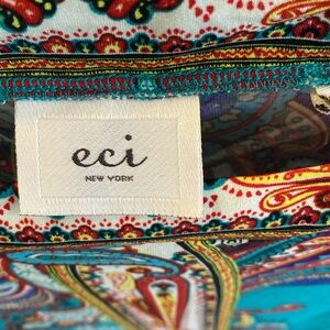 ECI Teal and Red Paisley 3/4 Sleeve Dress