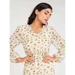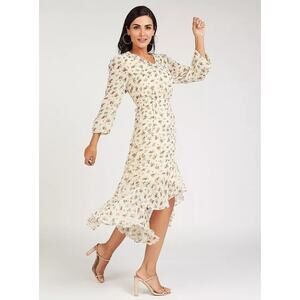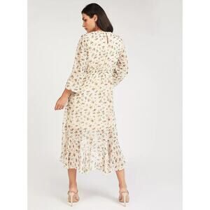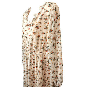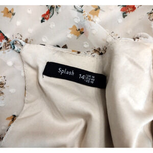 SPLASH Floral Dots Sheer Long Sleeves Ruffle Dress Ivory Green Orange Lined 14