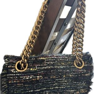 Chic tweed design with vibrant colors. Features gold chain strap. Perfect for stylish outings.