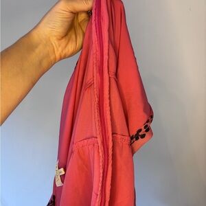 The Anthropologie Verb by Pallavi Singhee V-Neck Ombre Pink Maxi Dress in size L is a beautiful and versatile piece perfect for various occasions. This long, floral chiffon dress features a sleeveless design with a V-neckline and a side zip closure. The dress is lined for added comfort and has a colorful, bohemian theme ideal for weddings, parties, or casual wear. Made of viscose with a polyester lining, this dress is suitable for summer, fall, and spring seasons and adds a touch of elegance to any wardrobe.
