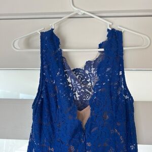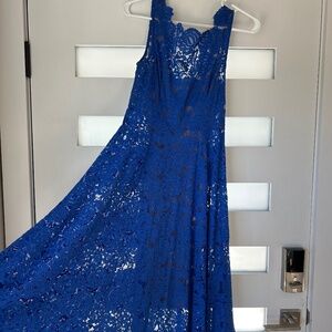 Anthropologie / Tracy ReeseCobalt Blue Lace Asymmetrical Flare Midi Dress
