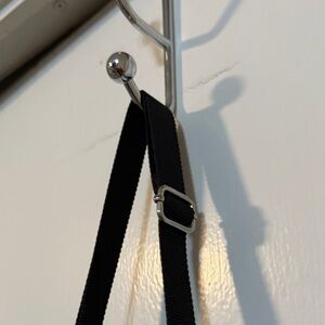 Stylish black crossbody bag with adjustable strap. Ideal for daily wear. 10” X 7”