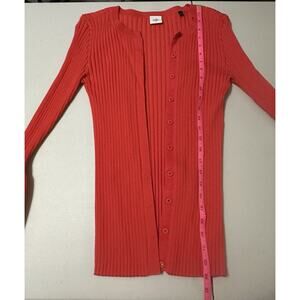 Cabi Red/Orange Ribbed Knit Bell Sleeve Cardigan Sweater – Size Small