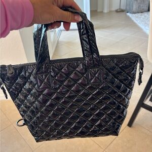 Sleek and stylish black card holder with a crocodile pattern. Perfect for organizing your essentials with elegance. Fits about six credit cards three on each side and it has a center compartment. Measurements 4 x 3.