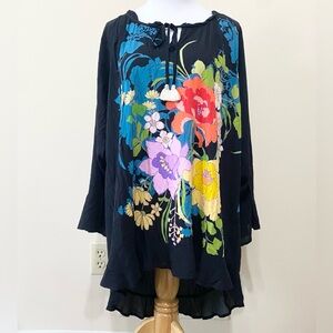 Nordstrom Sheer Black Silk Rose Ruffle Scarf Wrap