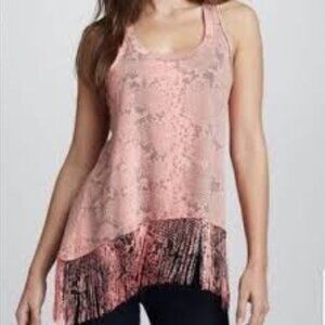 Elizabeth & James Salmon Coral Snakeskin Print Tank Top w/ Tassel Fringe S