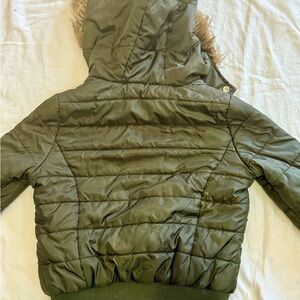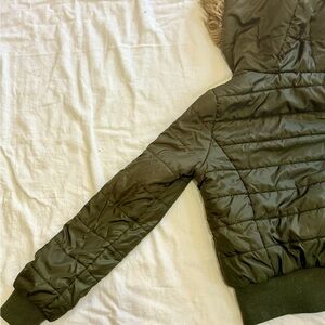 J2 Army Green Puffer Jacket XS Faux Fur Hood Bomber Style Winter Coat Y2K 90s