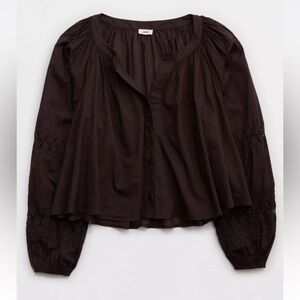 Aerie 100% Cotton Long Sleeve Crochet Button Down Shirt Size S