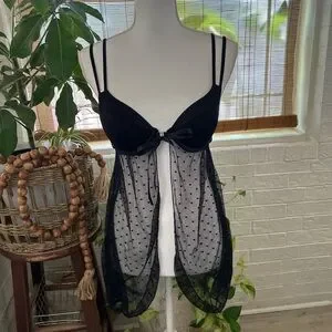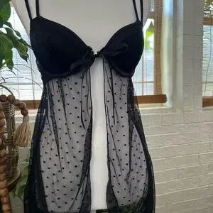 vintage 90s black sheer polka dot lingerie babydoll dress size small