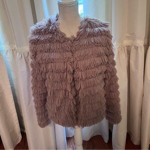 She + Sky Size Small soft faux fringe fur taupe jacket.