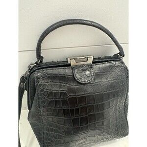 Patricia Nash Leather Crocodile Embossed Nela Frame Tote Black 10th Anniversary