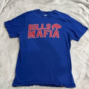 Bold blue tee with Bills Mafia graphic.