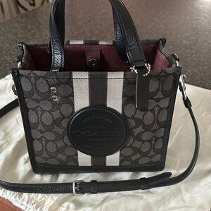 Elegant Coach mini bag in white leather with gold star accents. Perfect for any occasion.