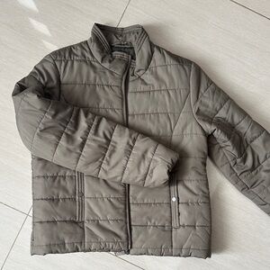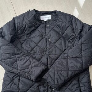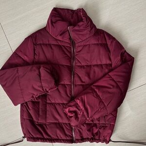 Stylish black puffer jacket. Features faux fur trim. Perfect for cold weather.