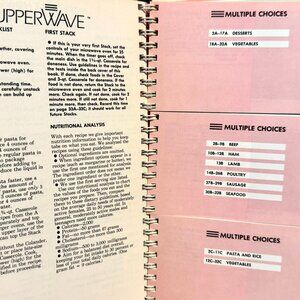 The TUPPERWAVE STACK-COOKED MEALS Cookbook from 1990 offers a vintage take on microwave menus. Recipes are provided by microwave expert Carolyn Dodson and Tupperware Home Parties. This illustrated cookbook features 112 pages including the index and is full of easy and tasty recipes! It was Published in 1990 by Meredith Books. Per web research, the spiral bound, 1990 publishing date, is considered the First Edition of this book. It was created in a collaboration with Tupperware Home Parties and Better Homes and Gardens, specifically to showcase recipes for the TupperWave Stack Cooker and uses a clever split-page format which will allow you to mix and match recipes across different layers of the cooker—top, middle, and bottom—for lots of great meal combinations