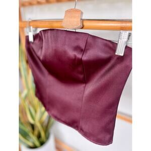 A New Day Slim Fit Party Tube Top Burgundy. Corset style with ruched elastic backing and side zip closure. New without tags, never worn, no flaws.