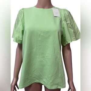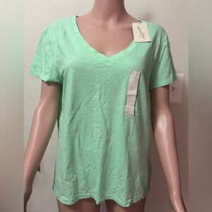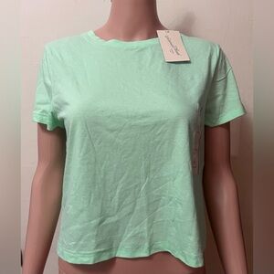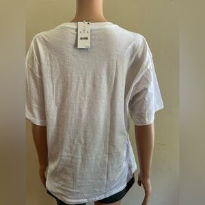 White t-shirt featuring The Rolling Stones logo. Bold graphic design with red, yellow, and green accents.