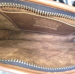 Features: Solid gold brass TALON industrial zipper closure. Inside pocket. Reinforced leather handles. Original Coach leatherware tag attached. Original Coach factory mini catalog & note.