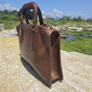 Featured in the vintage Coach Fall 1981 catalog. The larger of the two slim Satchels but smaller than a briefcase. Perfect for