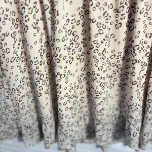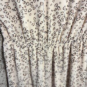 This dress captures a playful yet elegant aesthetic, featuring a delicate leopard print pattern. The elastic waist and flounce hem create a flattering silhouette, while the ruffled neckline adds a touch of romantic detail.
