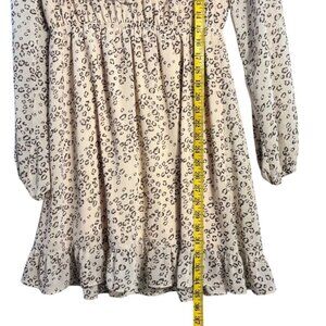 Leopard Print Long-Sleeve Ruffled Dress With Elastic Waist & Flounce Hem Size S