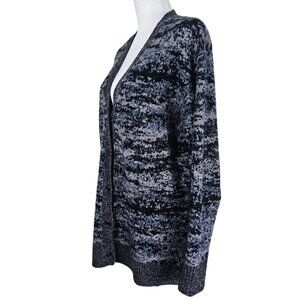 Athleta cardigan, textured sweater, merino wool cardigan, gray black sweater, medium size cardigan, women's button sweater, cozy knit cardigan, ribbed hem sweater, warm winter cardigan, stylish layering sweater, long sleeve cardigan, modern knit sweater, Athleta wool blend, preppy, outdoor, quiet luxury, old money, academia, teacher, grannycore