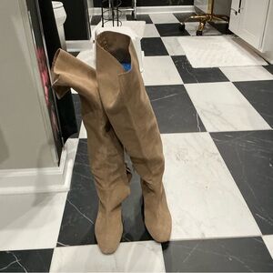 Cream/beige boots with white embroidered detailing. Size 7.5. 13 inch shaft. Handmade in Mexico