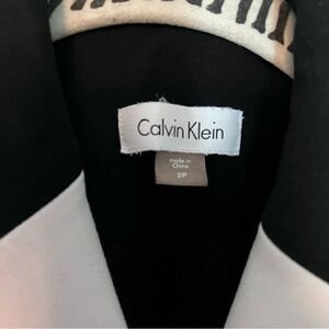 Calvin Klein white label (estimated year 2000s-2010s) Chic sleeveless midi dress with a bold black and white contrast. Features a stylish removable tie belt for a flattering fit and a white lapel collar feature.