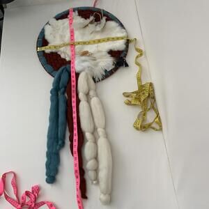 Large Dream Catcher Mandela Wool,Rabbit Fur,, Feathers 40" LONG