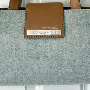 Authentic Bvlgari Grey Wool Shoulder Satchel Handbag