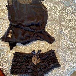 Experience comfort and style with this elegant black ruffled sleepwear set. Perfect for a cozy night in.