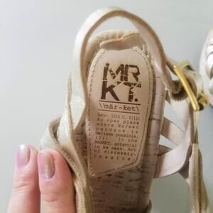 MRKT Gold Strappy Chunky Block Platform Heels 7.5