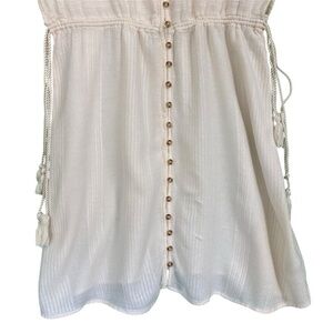 RIPCURL Dune Dress L White Boho Beach Cover Up Cotton Button Front Tassel Resort