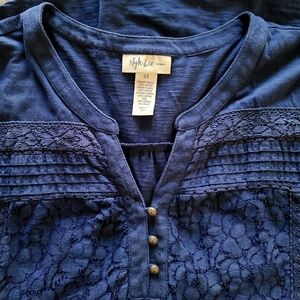 Style & Co Navy Blue Lace Women's Top Plus Sz 2X